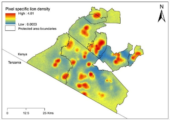 Studien, som leds av Oxford Universitys zoolog Nic Elliot som leder Mara Lion Project, uppskattar att lejonens täthet är i genomsnitt 16,85 lejon per 100 kvm, vilket motsvarar 420 st lejon över ett års ålder i Mara-reservatet och angränsande naturområden.