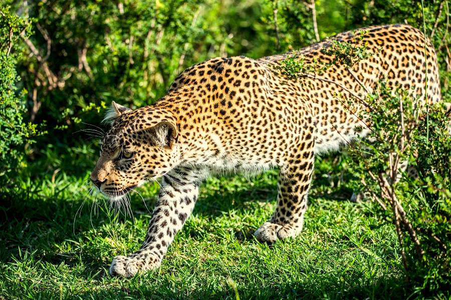 Leoparden är ett hemlighetsfullt och skyggt kattdjur som är mest aktiv mellan solnedgång och soluppgång, och vilar resten av dagen bland buskar, stenar eller uppe på en trädgren.