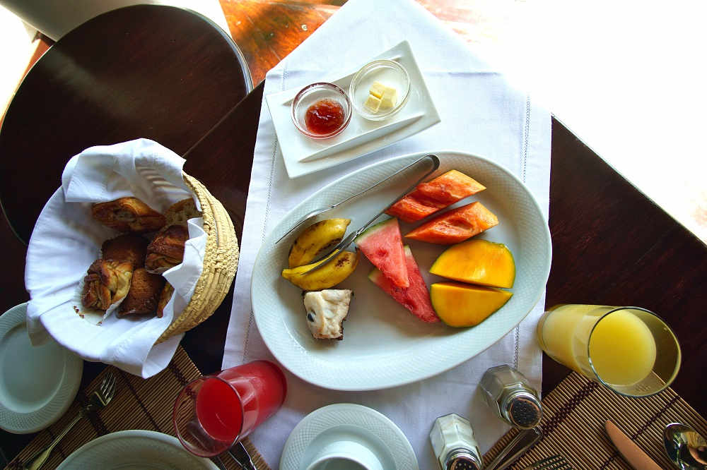 Våra kockar har sammanställt en exotisk meny där de blandar färskfångat med råvaror som nyss plockats för att skapa en underbar middagsupplevelse, full av spännande smaker. Den eleganta terrassen på The Plantation House leder in i den kryddinspirerade baren, och senare in i den antika matsalen där tygerna byter dagligen från rostfärgat silke till tunna vita linnen.